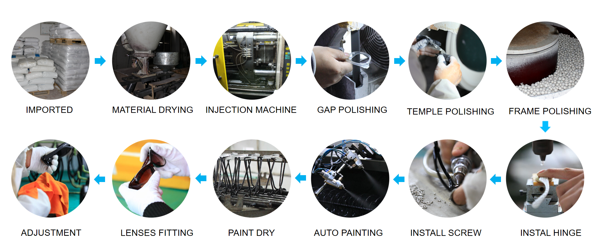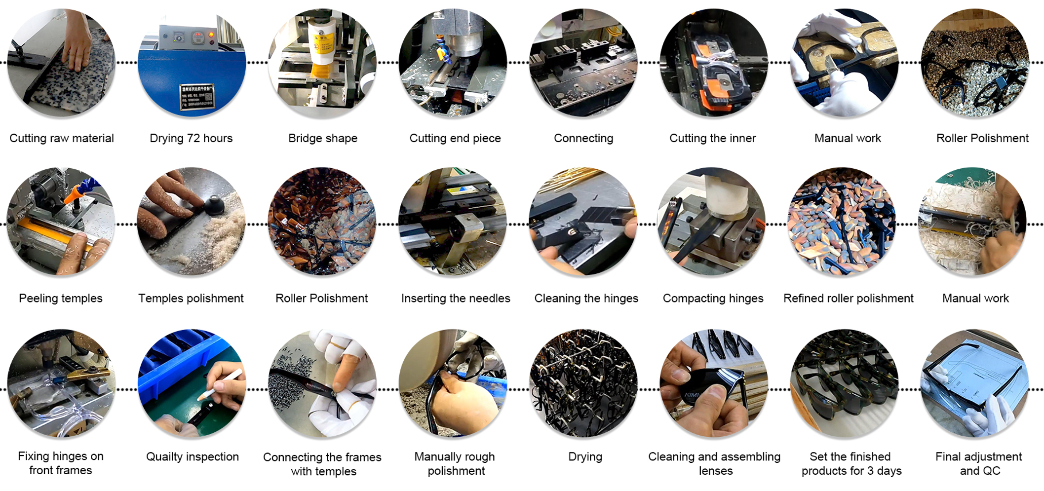 Taizhou Huajing eyewear Co.,Ltd produce premium acetate eyewear, metal eyewear, Titanium eyewear, acetate/metal combination frame for high-end eyewear brands. The company has more than 15 years of experience in producing eyeglasses and sunglasses, and has a complete set of technology, quality, and management assurance systems to ensure the quality of each product.